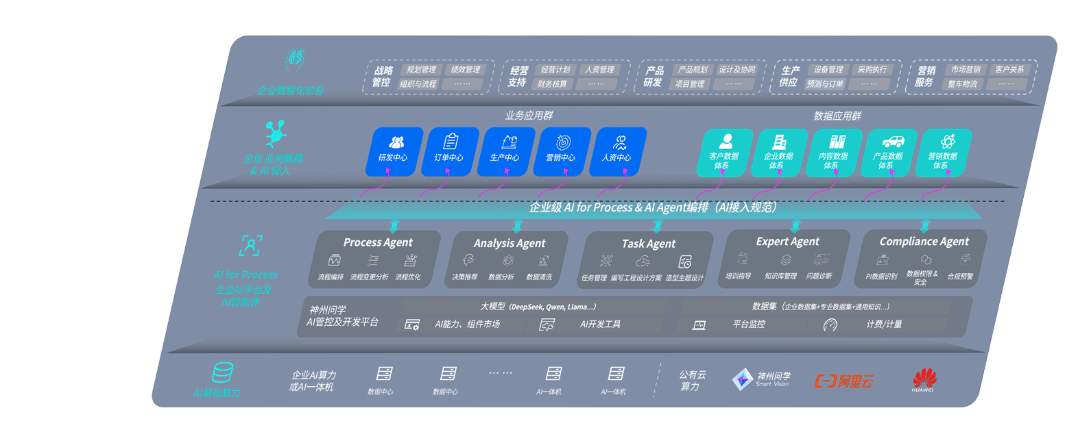 端到端的一站式AI工作空间深度融合了从企业战略规划到日常经营的全流程业务板块,,定向解决车企内部领域多、、、部门多、、、链条长、、场景碎片化等难题,,,支持车企快速构建以AI为核心的生产力写作体系,,,,实现任务执行与AI能力的无缝集成与交互